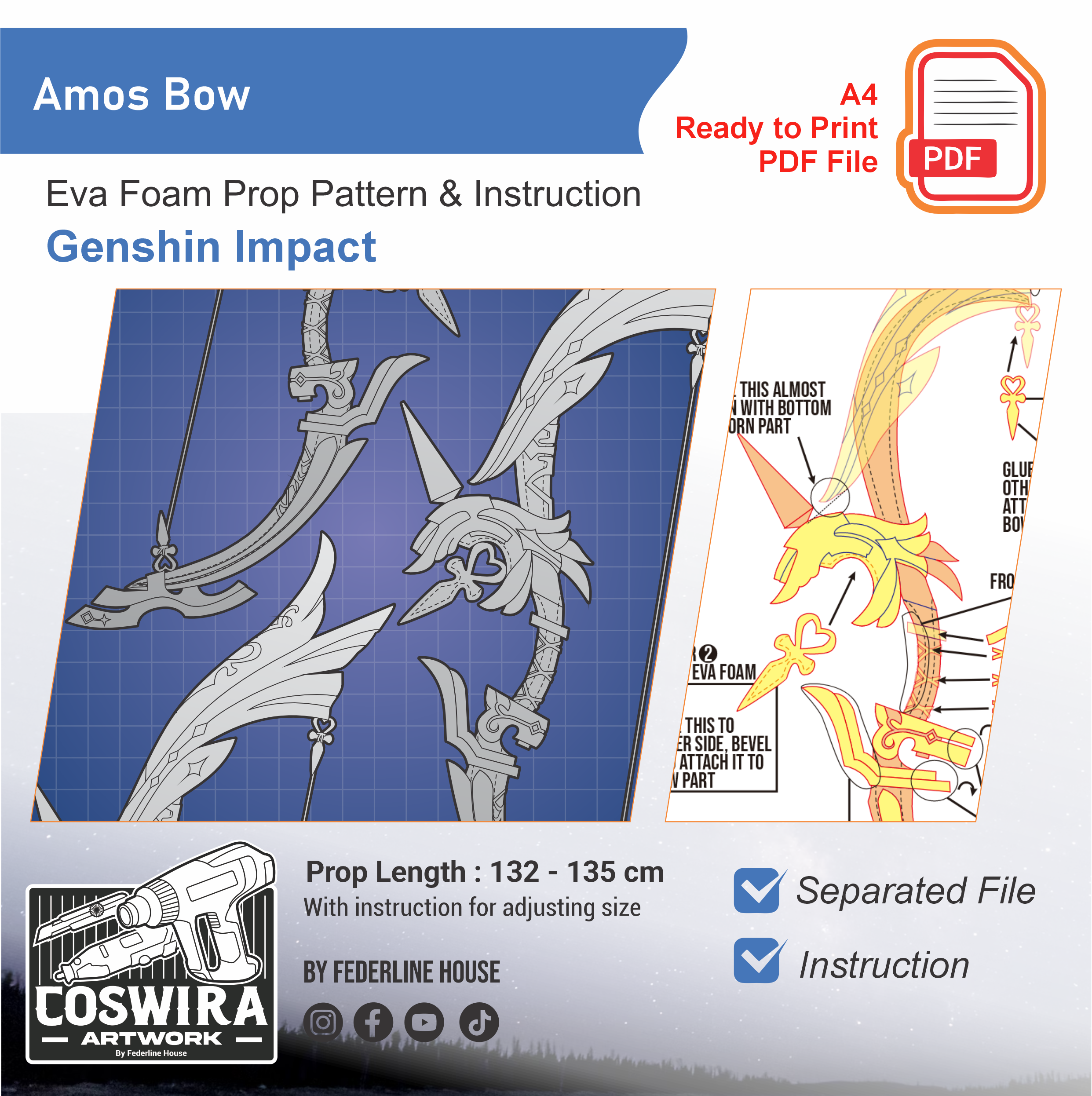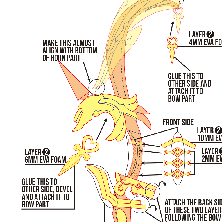 Amos’ Bow Prop Pattern – Template EVA Foam untuk Cosplay (Genshin Impact)