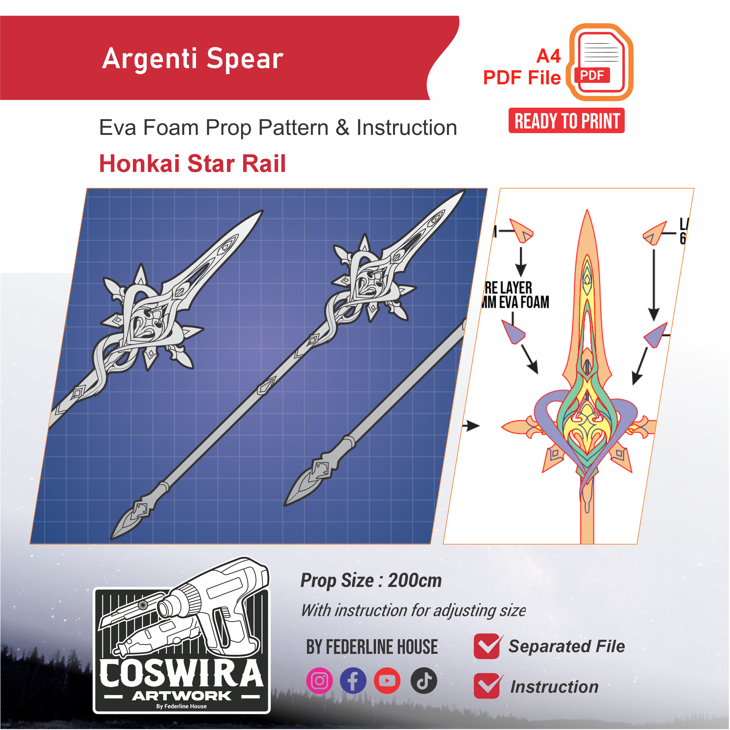 Argenti Spear Prop Pattern – Template EVA Foam untuk Cosplay (Honkai: Star Rail)