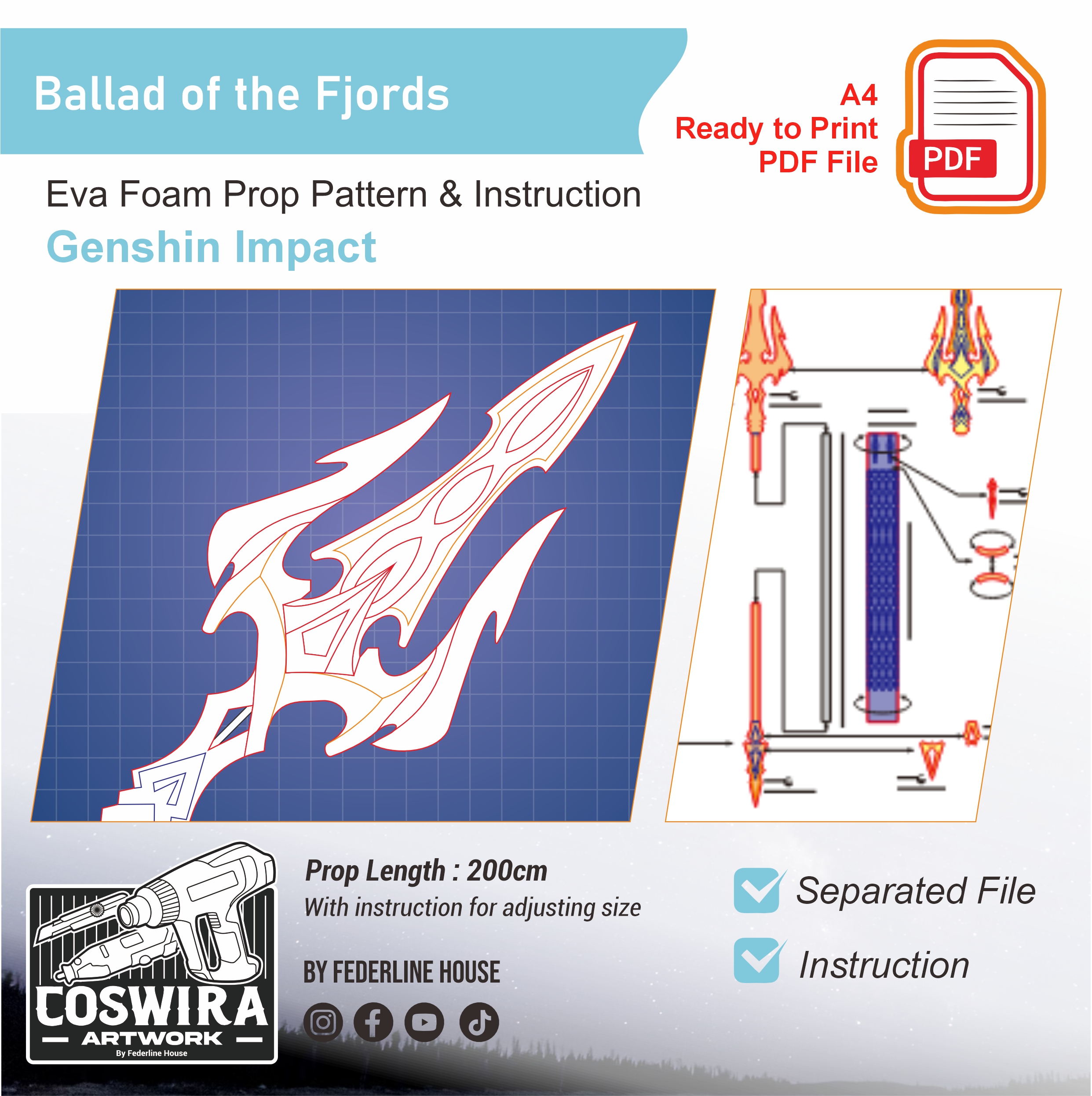 Buat Ballad of the Fjords dari Genshin Impact dengan EVA Foam pattern ini! Template ini dirancang supaya mudah dirakit tapi tetap terlihat detail, elegan, dan akurat seperti senjata versi game. Tetap ringan dan nyaman digunakan untuk cosplay event, photoshoot, atau display.