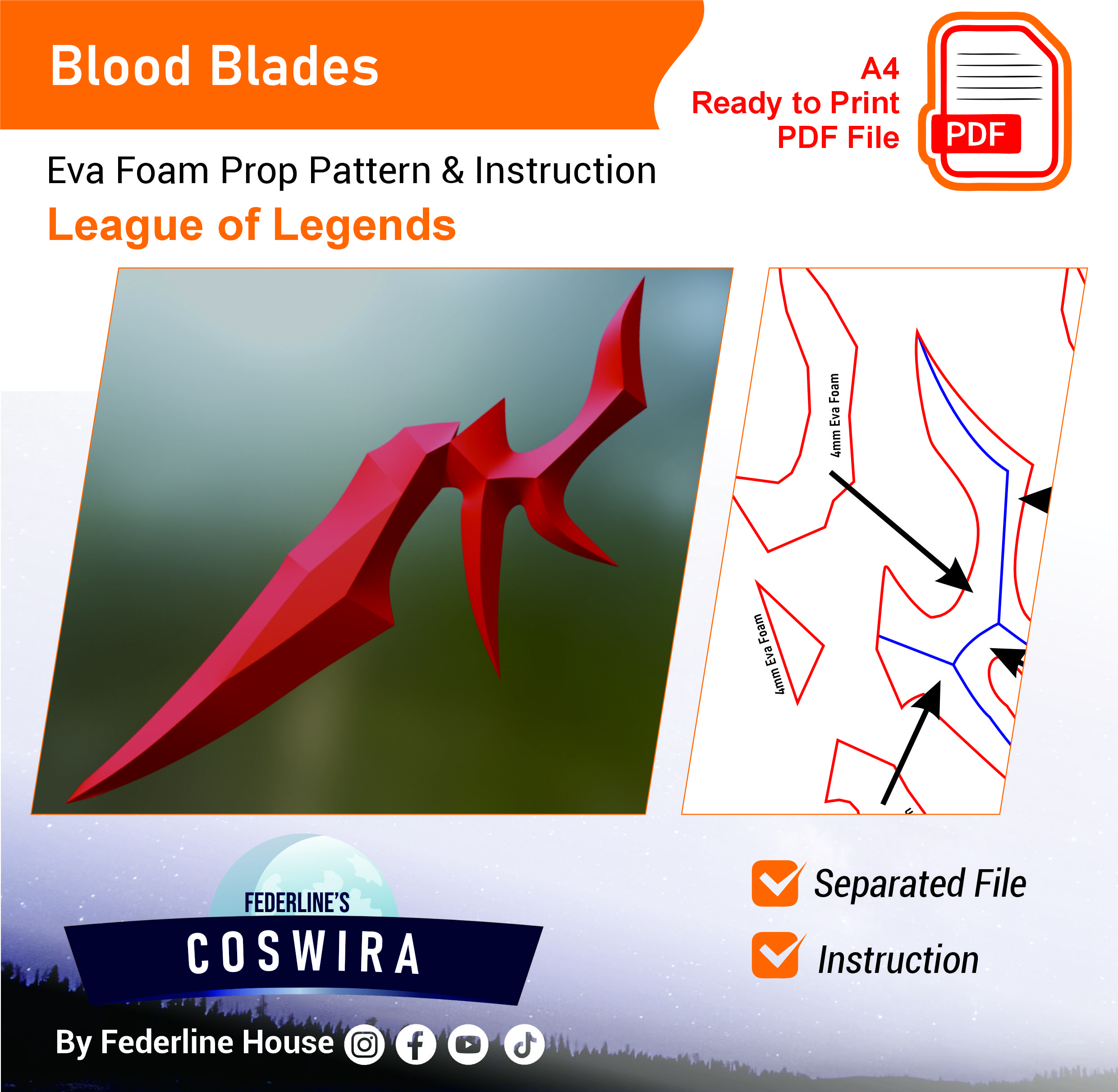 π₯ Instant Download: Blood Blades β EVA Foam Pattern Terinspirasi League of Legends