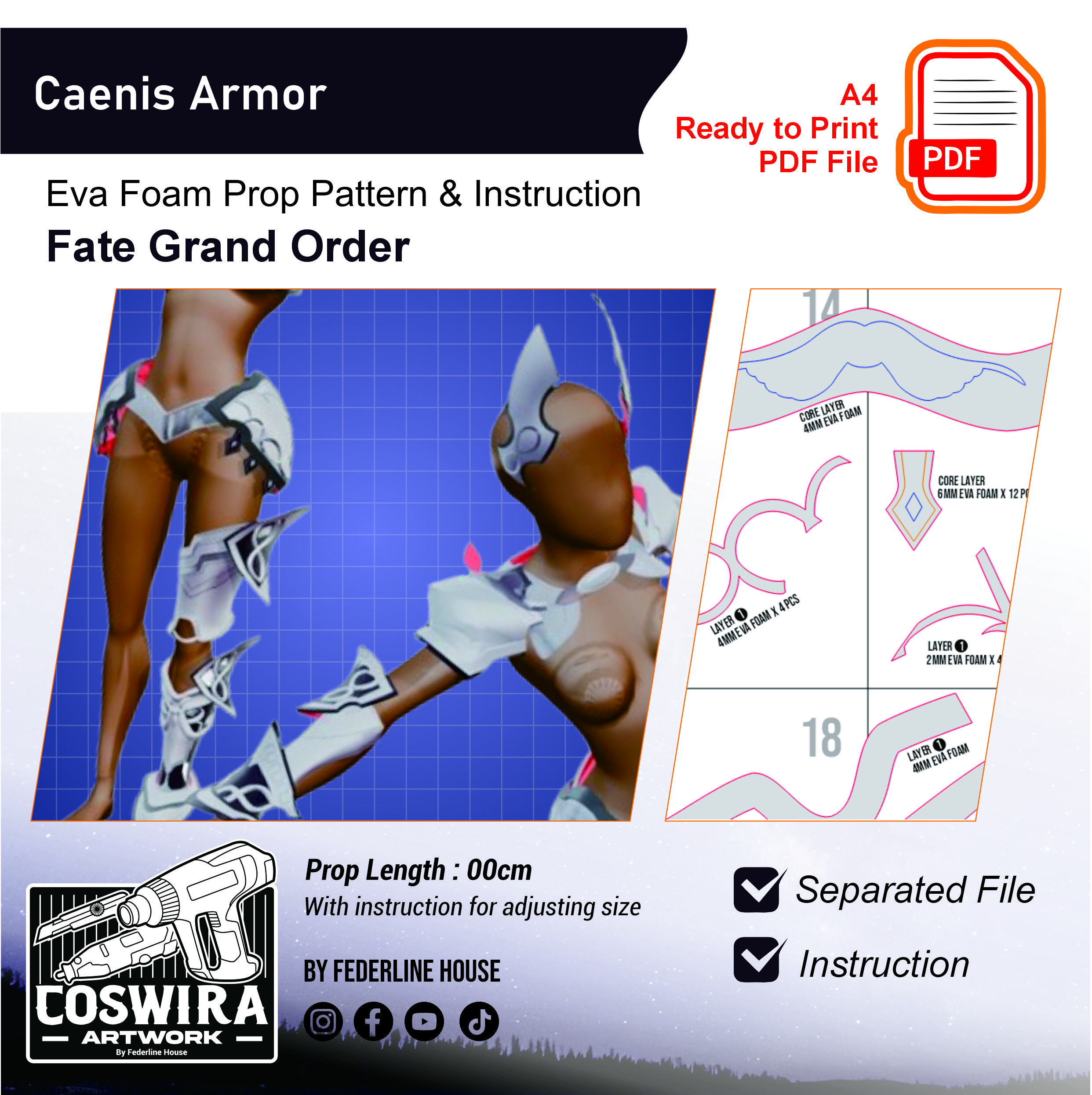 Buat armor Caenis dari Fate Grand Order dengan EVA Foam pattern digital ini, cocok untuk cosplay, photoshoot, atau display prop.