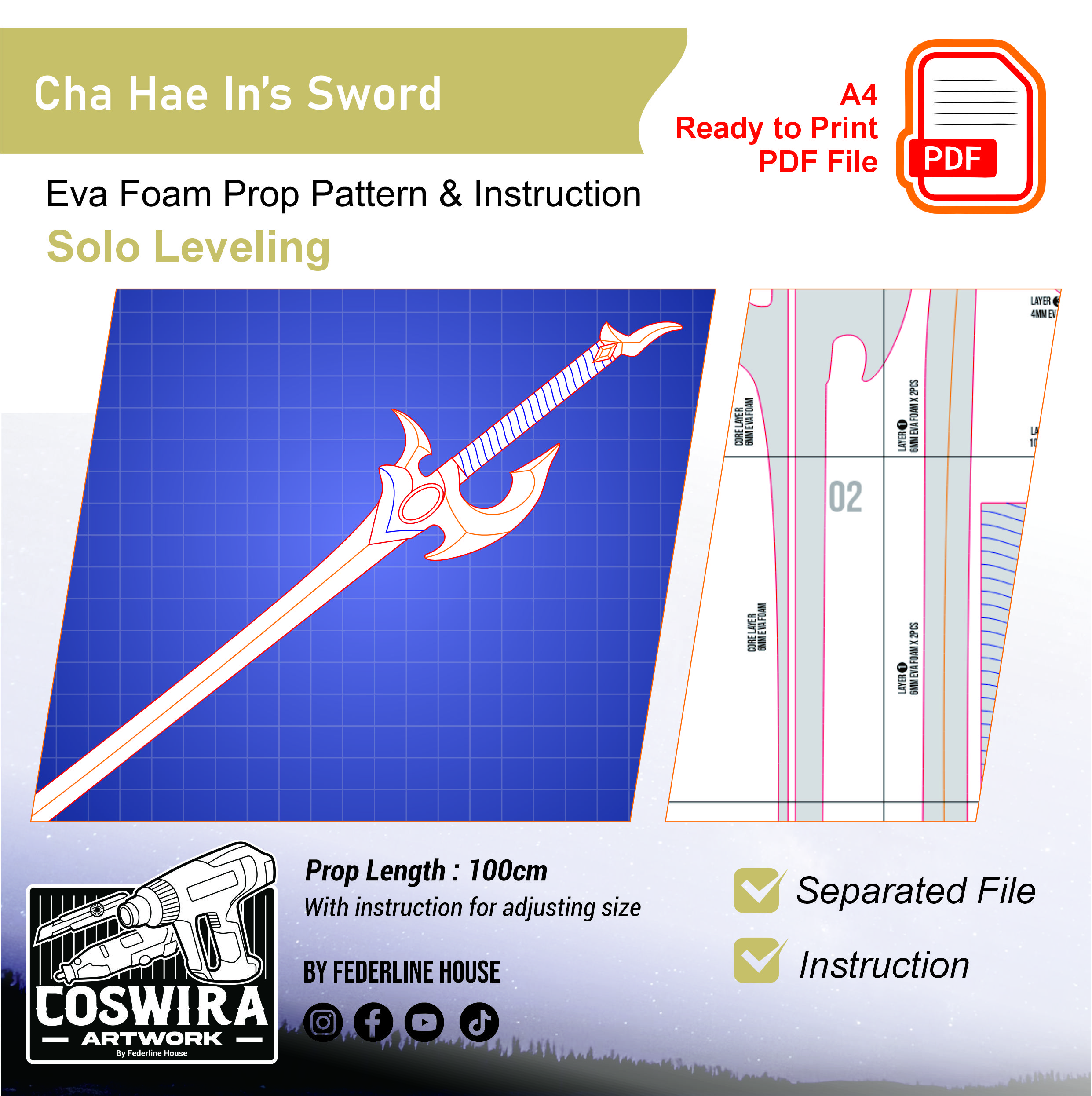 Buat sword milik Cha Hae-In dari Solo Leveling dengan EVA Foam pattern ini! Template ini dirancang supaya mudah dirakit tapi tetap terlihat elegan, tajam, dan detail seperti versi senjata di manhwa/anime.