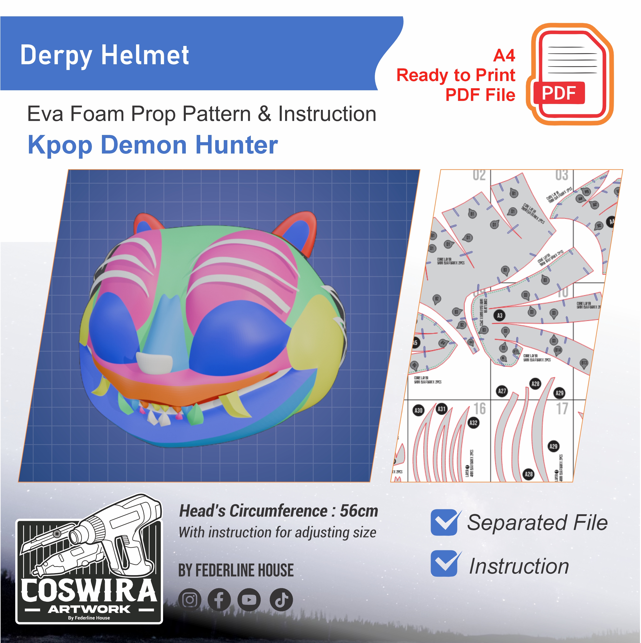 πŸ“₯ Instant Download: Derpy Helmet – EVA Foam Pattern Terinspirasi Kpop Demon Hunters