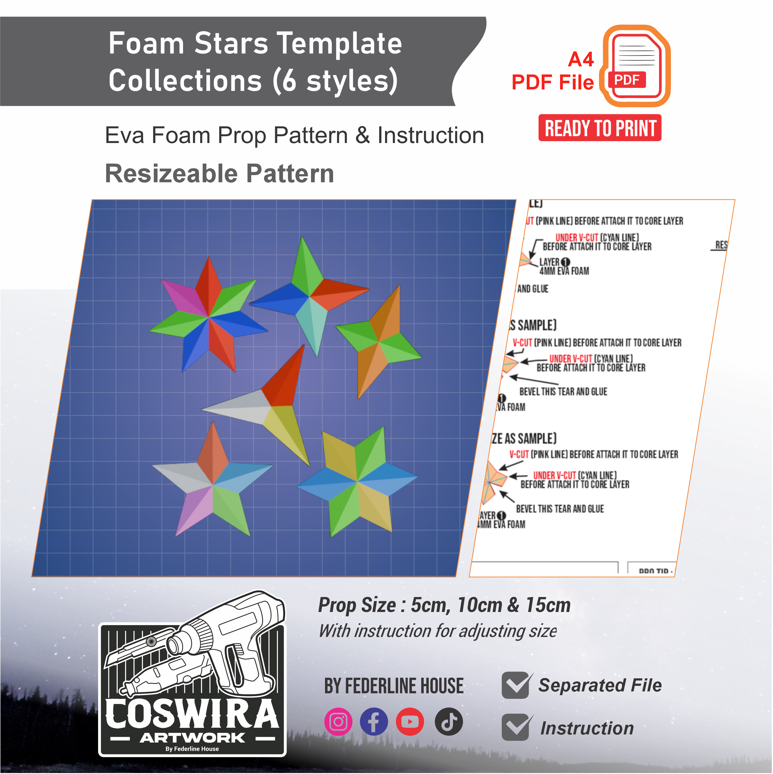 π₯ Instant Download: Foam Stars Templates Collection β EVA Foam Basic Pattern untuk Cosplay & Craft