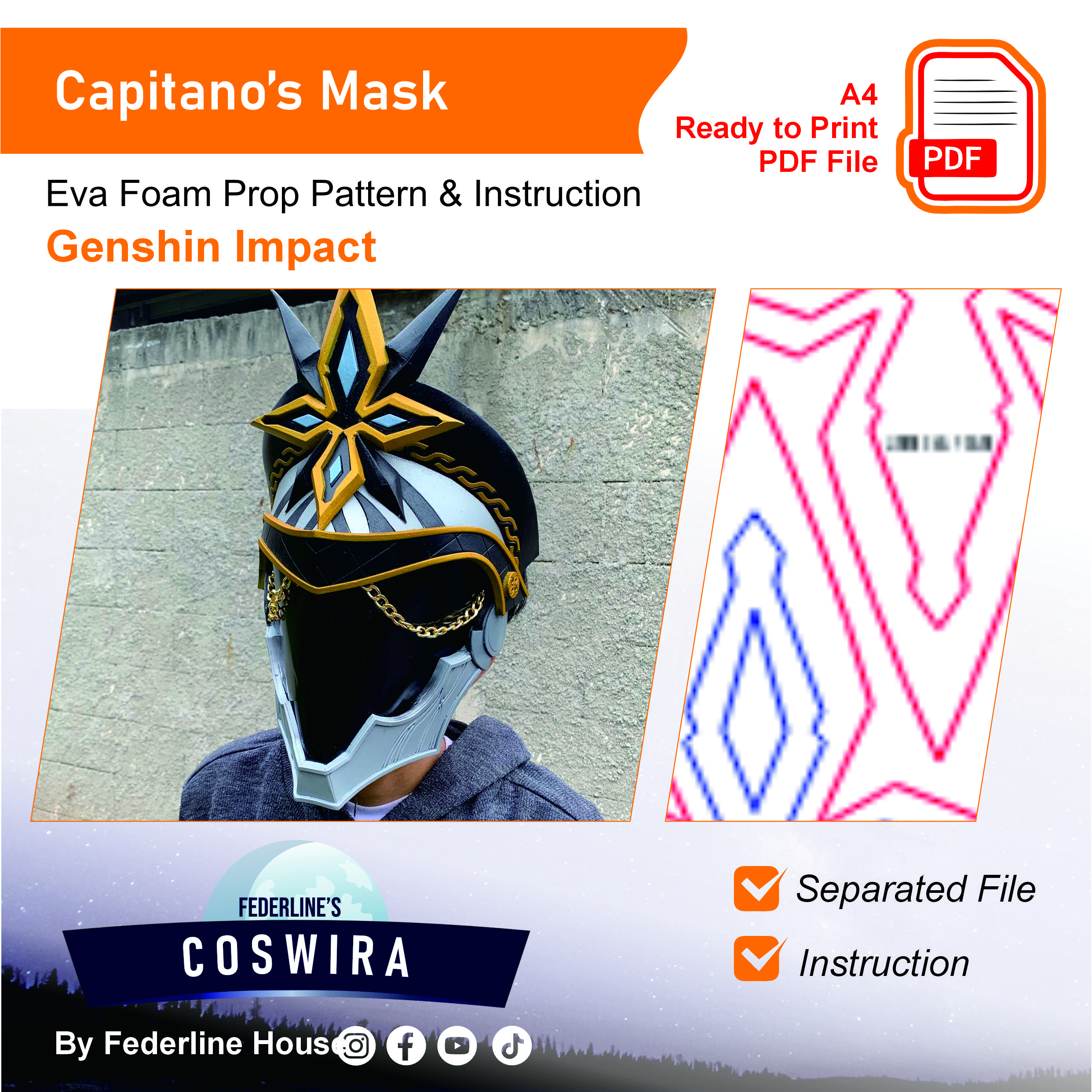 📥 Instant Download: Il Capitano’s Mask – EVA Foam Pattern Terinspirasi Genshin Impact