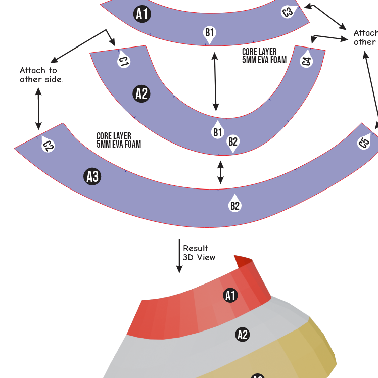 Buat armor collar dengan desain bulat ala superhero menggunakan EVA Foam pattern ini! Template ini dirancang sebagai basic pattern yang mudah dirakit dan cocok untuk berbagai costume superhero, fantasy armor, atau cosplay original character.