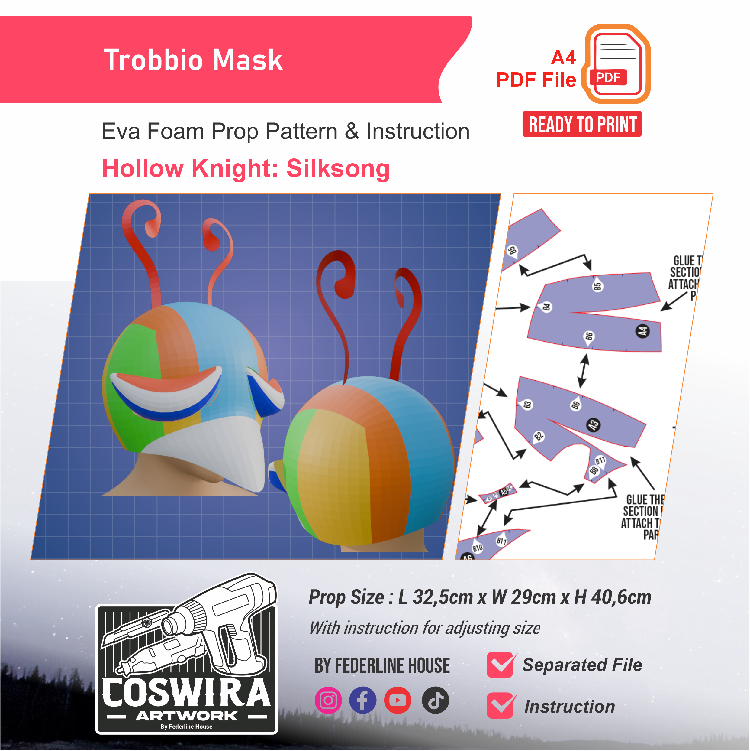 Buat mask karakter Trobbio dari Hollow Knight: Silksong dengan EVA Foam pattern ini! Template ini dirancang supaya mudah dirakit tapi tetap mempertahankan bentuk unik dan detail khas seperti versi karakter di game. Ringan dan nyaman dipakai untuk cosplay event, photoshoot, atau display.