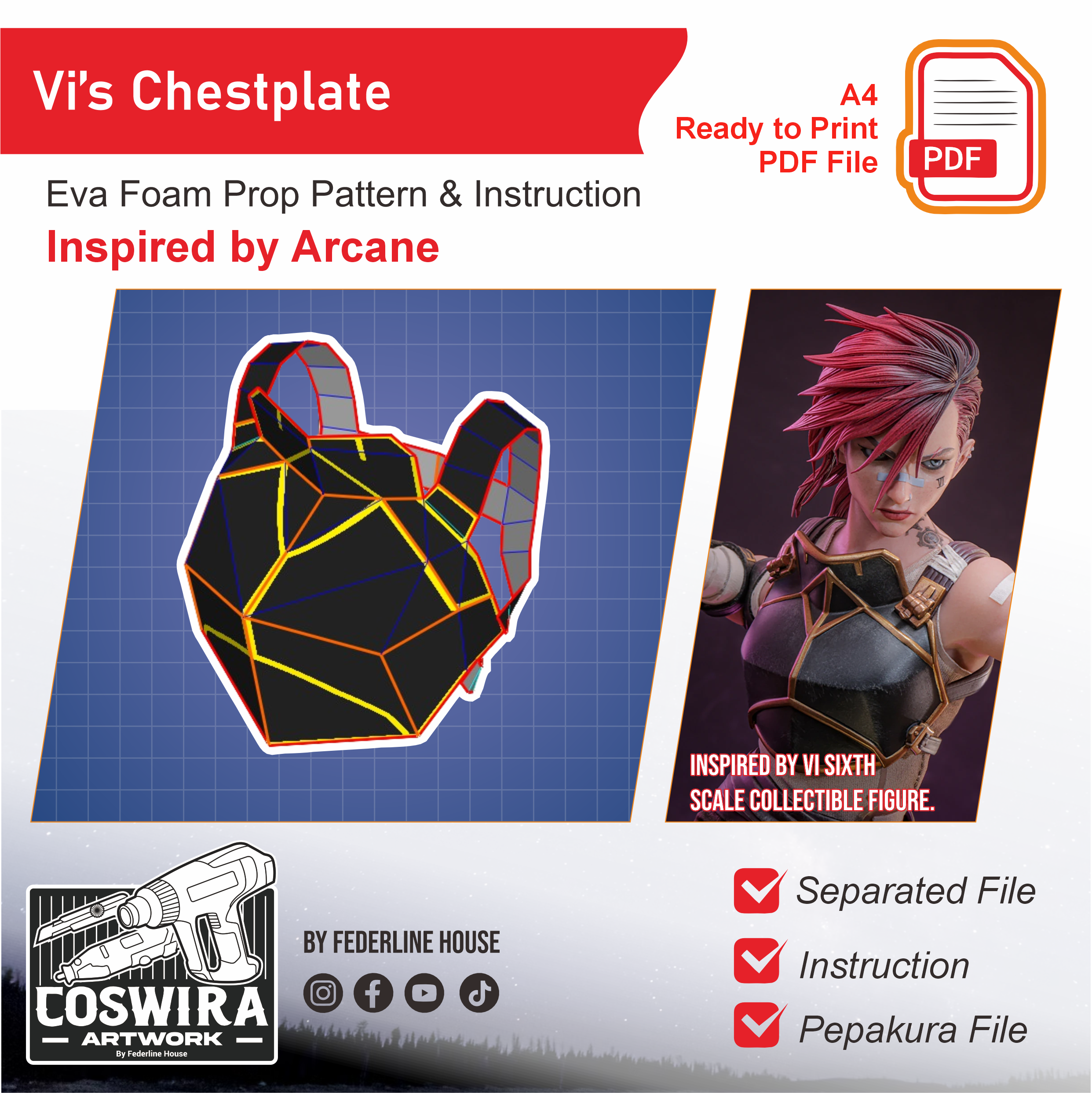 Bikin chestplate ikonik milik Vi dengan mudah pakai EVA Foam pattern ini! Desainnya dibuat supaya gampang dirakit tapi tetap mempertahankan bentuk armor yang solid dan khas karakter Vi. Cocok untuk cosplay Arcane, League inspired build, photoshoot, atau display costume.